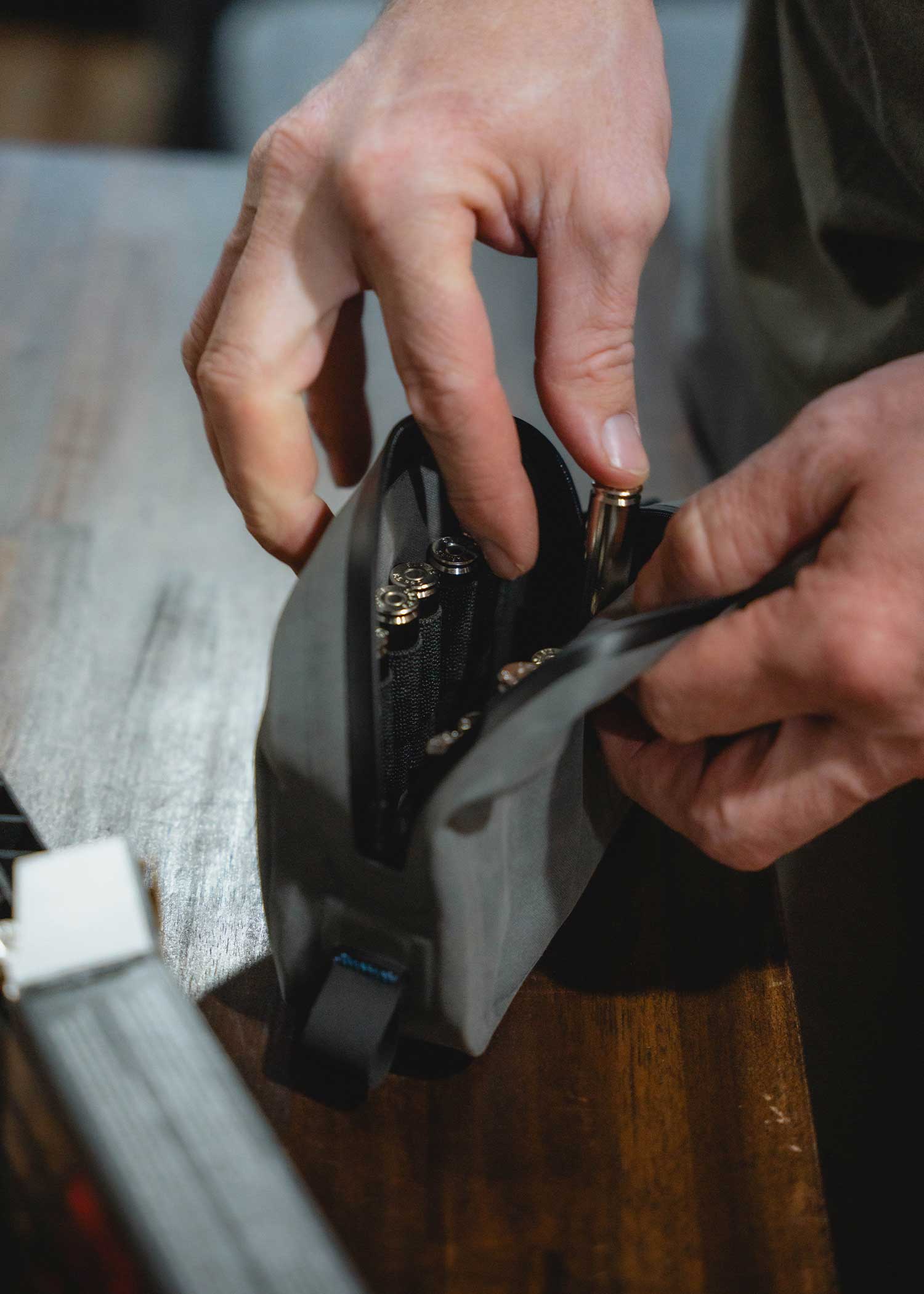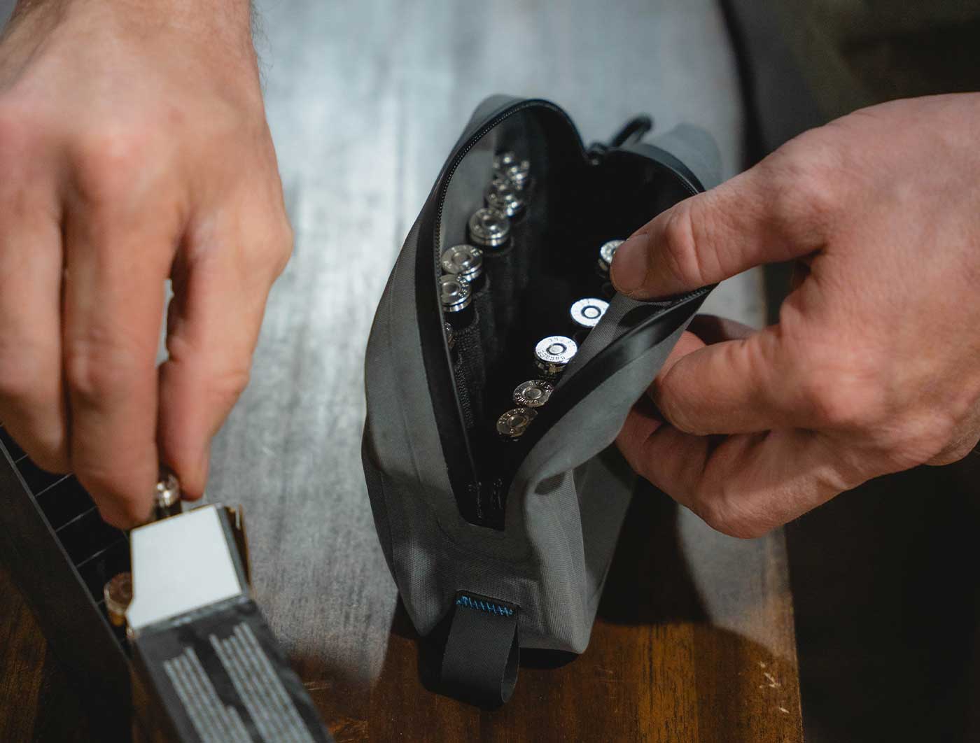 Yes. The Ammo Pouch is built with seam-welded waterproof construction and waterproof zippers that form a complete barrier against moisture, dust, and grit—keeping your gear dry in any condition.
